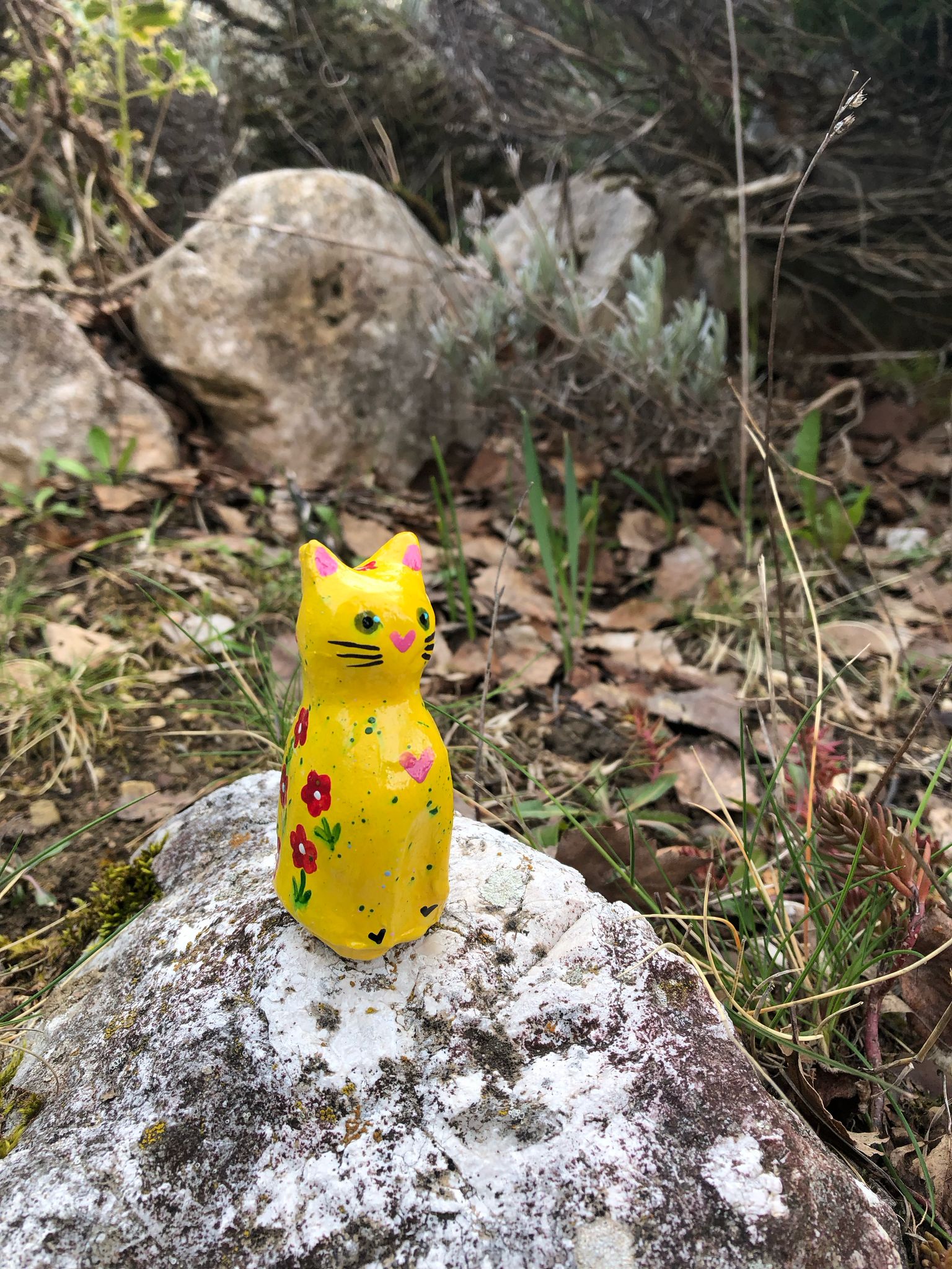 Gattino Artigianale di ceramica giallo – Realizzato e Dipinto a Mano con Amore