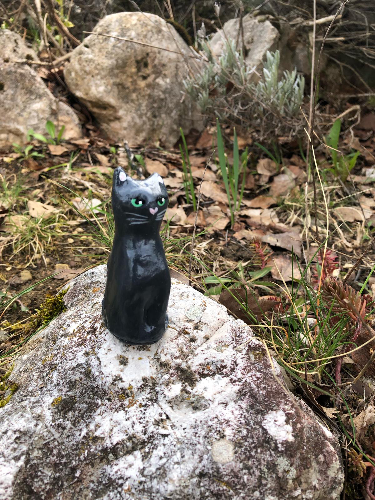 Gattino Artigianale di ceramica grigio – Realizzato e Dipinto a Mano con Amore